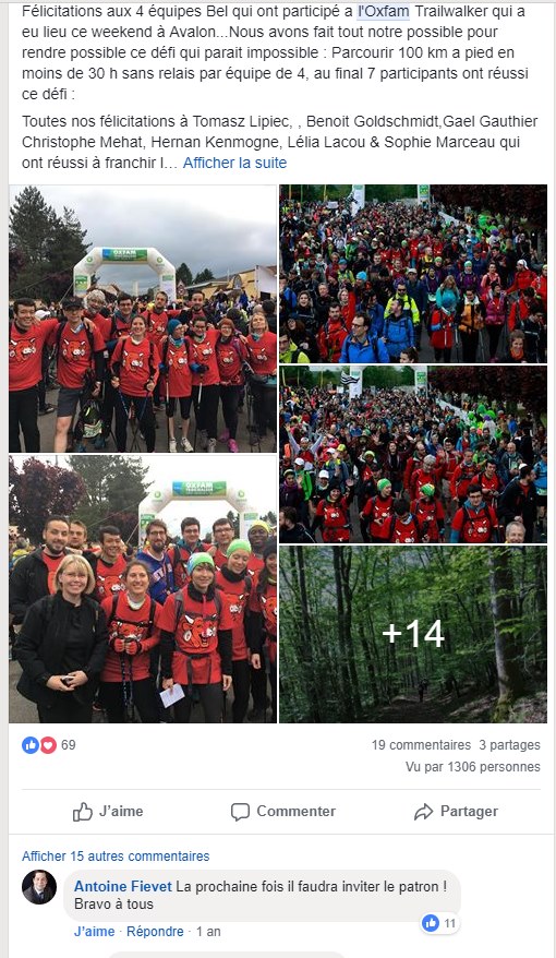 Par exemple, personnellement j'ai mobilisé une vingtaine de salariés pour participer au plus grand défi sportif solidaire mondial. On a sensibilisé nos collaborateurs via une communication régulière via notre RSE (réseau social d'entreprise) en les informant de nos entrainements & sur les actions de l'ONG. Grâce à nos différentes actions on a collecté une belle cagnotte pour les actions de solidarité de l'ONG, et on a obtenu les félicitations de notre PDG, très fier de la performance des équipes le jour J !